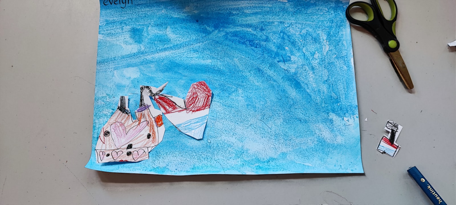 Om de klas gezellig te versieren zijn wij ook druk aan het knutselen geweest. Zo hebben we allemaal de stoomboot getekend en uitgeknipt. Daarna moesten we de boot opplakken op onze geschilderde achtergrond van de lucht en de zee. In een mooie schilderijlijst hebben we allemaal een tekening van onszelf gemaakt. Deze tekeningen hebben we in een grote envelop voor Jeroen van het Sinterklaasjournaal gedaan en gepost in de brievenbus bij het postkantoor van groep 3. De kinderen mochten kiezen of ze een Sinterklaas, Piet of het paard wilden vouwen. Wat zijn ze mooi geworden!