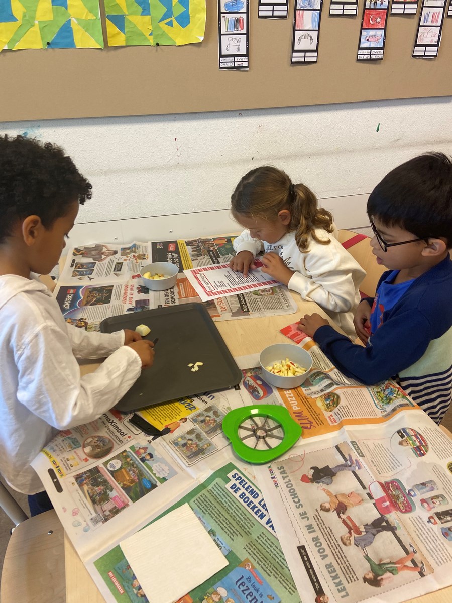 We hebben kort besproken hoe je een recept leest, waarna de kinderen in tweetallen aan de slag gingen. Tijdens het bakken waren we dus niet alleen bezig in de keuken, maar ook met (begrijpend) lezen.
