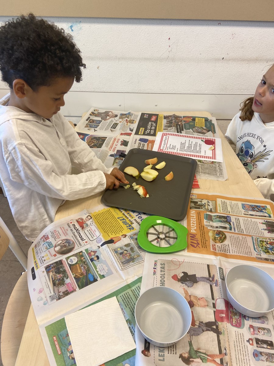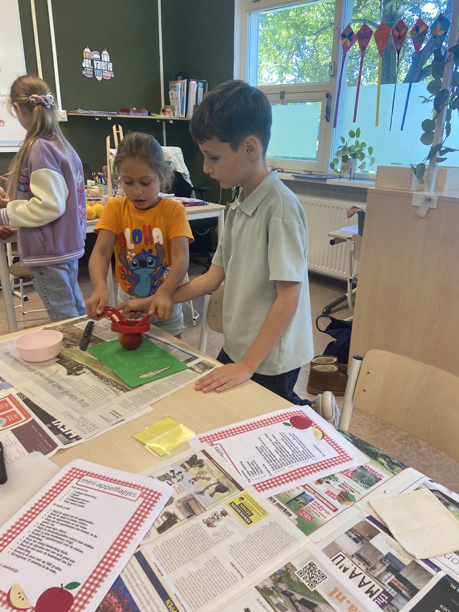 Naast dat het gezellig en smakelijk was, was het ook heel leerzaam. De kinderen kregen namelijk een tekst over het maken van een appelflap. Zo leerden ze dat dit een instructietekst is, die we ook wel een recept noemen.