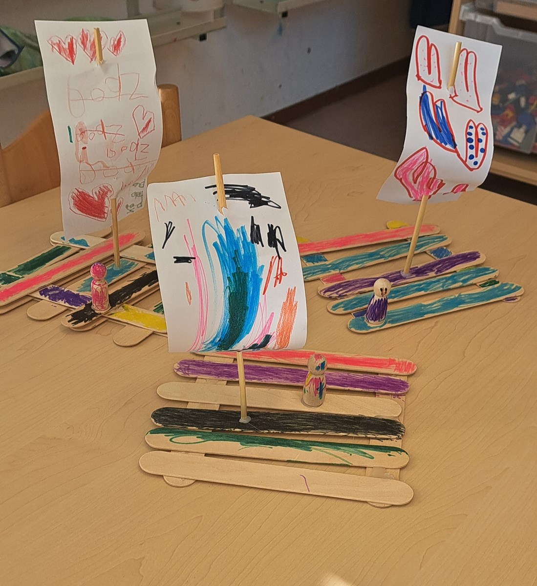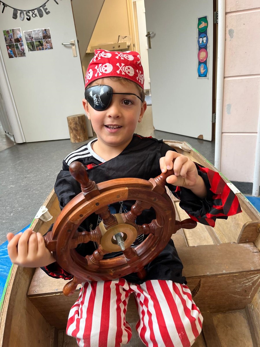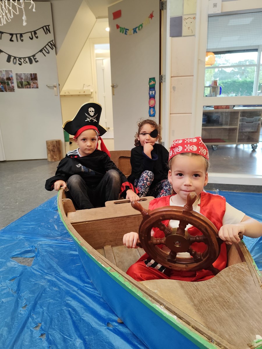 De afgelopen weken is onze hal veranderd in een piraten wereld. Zodra de kinderen de gang inlopen , stappen ze ons piratenhuis binnen en begint het avontuur. Samen maken we plannen, spelen rollenspellen en beleven spannende momenten op zee.