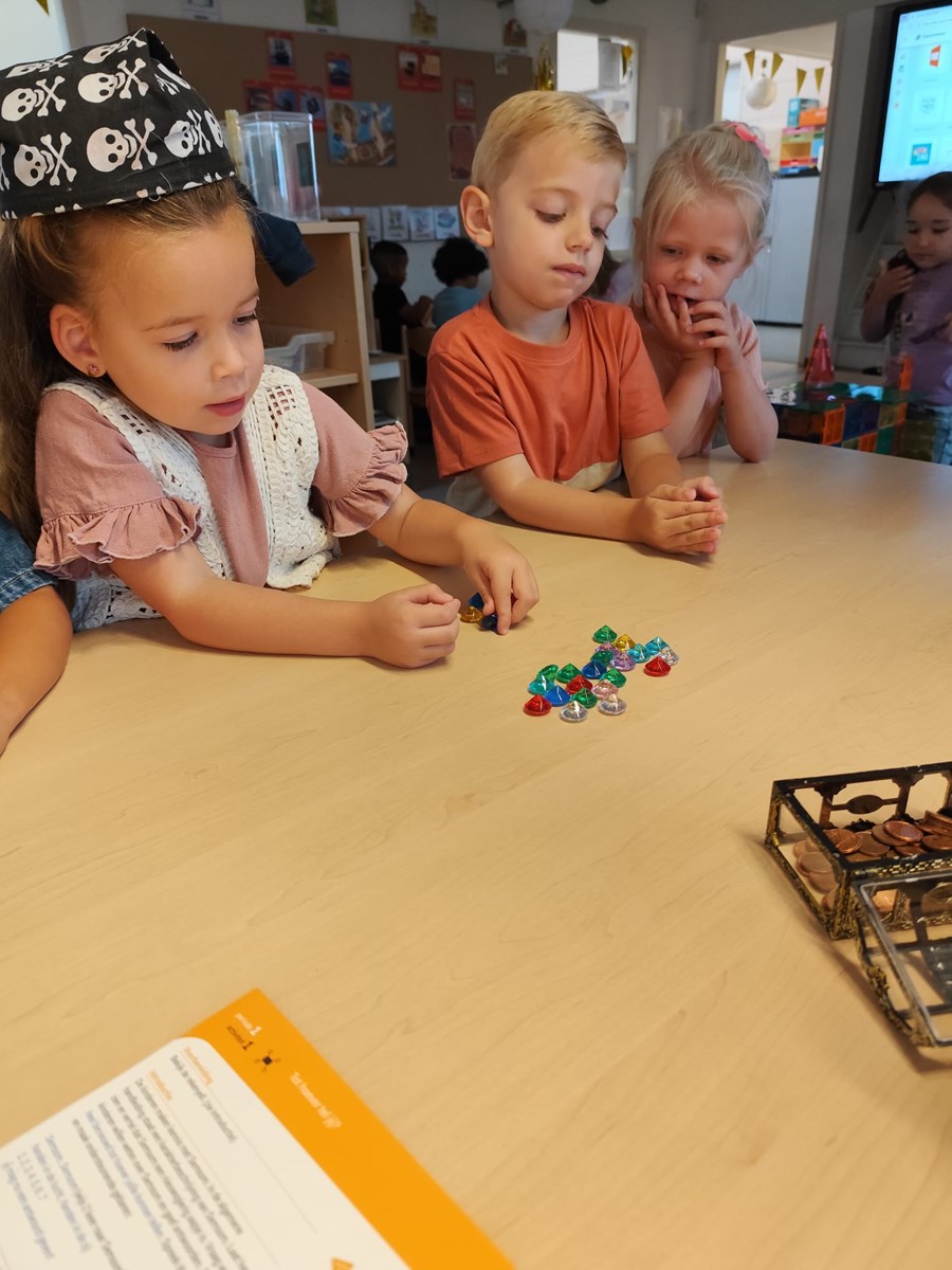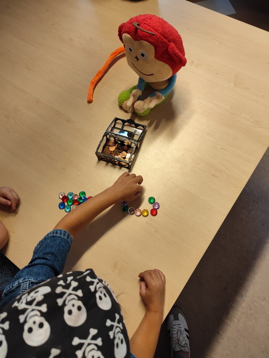 Ons nieuwe vriendje Semsom de rekenaap helpt ons ondertussen met rekenen. Op een speelse manier oefenen de kinderen sommen, alsof ze schatten aan het tellen zijn.