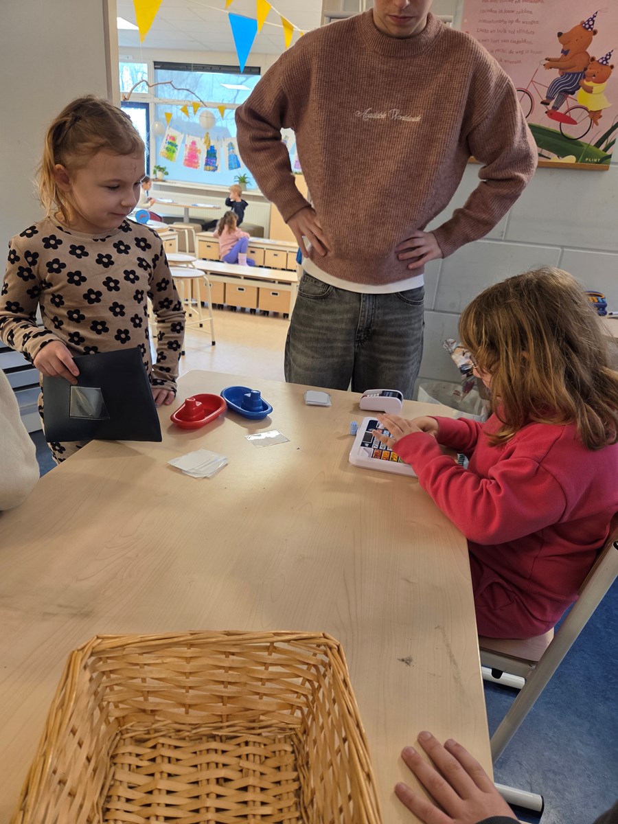 Groep 2 ging als echte bakkers aan de slag! Ze leerden een recept voor zoutdeeg schrijven met behulp van pictogrammen en maakten daarna natuurlijk ook het deeg voor bij de bakkerij. Daarnaast bedachten ze een prijslijst en vouwden ze zelf bakkerszakjes om al het lekkers in te doen. Groep 3 speelde samen met groep 4 in de speelgoedwinkel. Daar namen de kinderen onder begeleiding de rol van klant of winkelier op zich. In deze spelsituatie leerden ze gepast betalen, net als in het echt. Wat een mooie oefening in spelvorm!