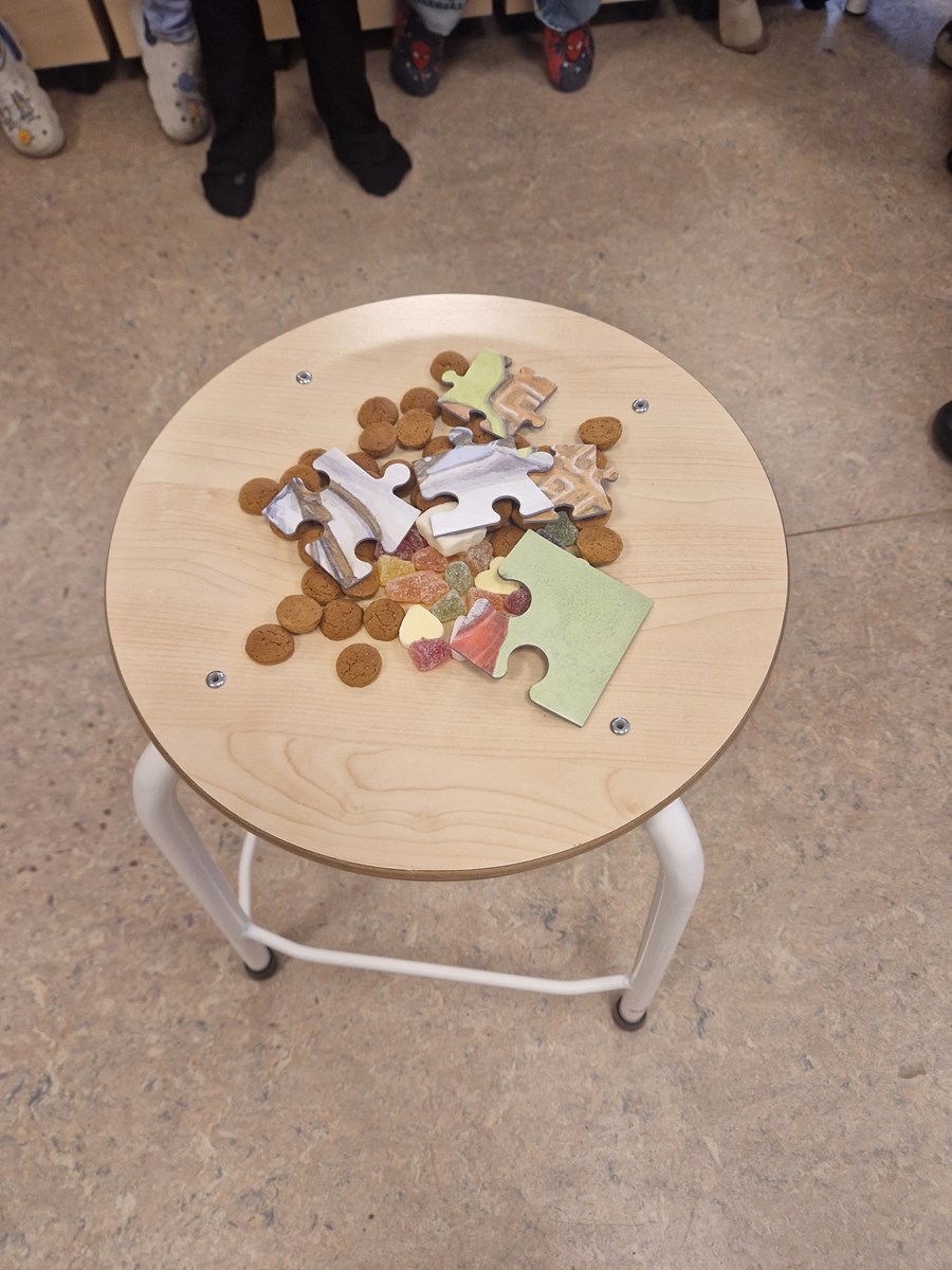 Elke dag kijken de groepen 1 en 4 gezellig samen met ons naar het Sinterklaasjournaal. Ondertussen zijn we druk aan het puzzelen met de gevonden puzzelstukjes — spannend hoor, wat zal het worden?