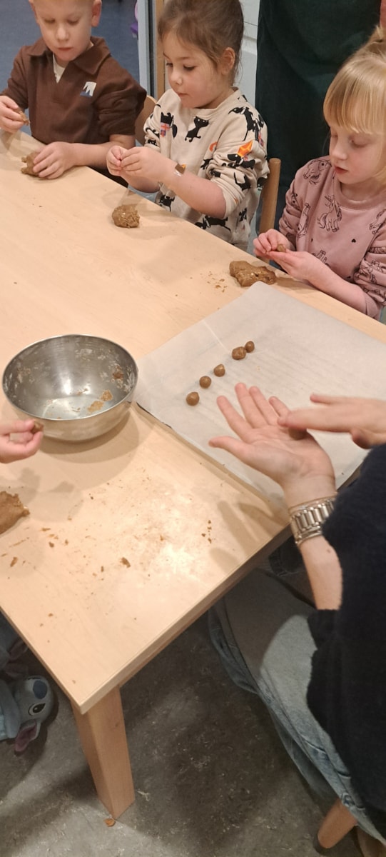 We hebben samen pepernoten gebakken. De kinderen hebben goed geholpen en door de hele school hingen heerlijke geuren.