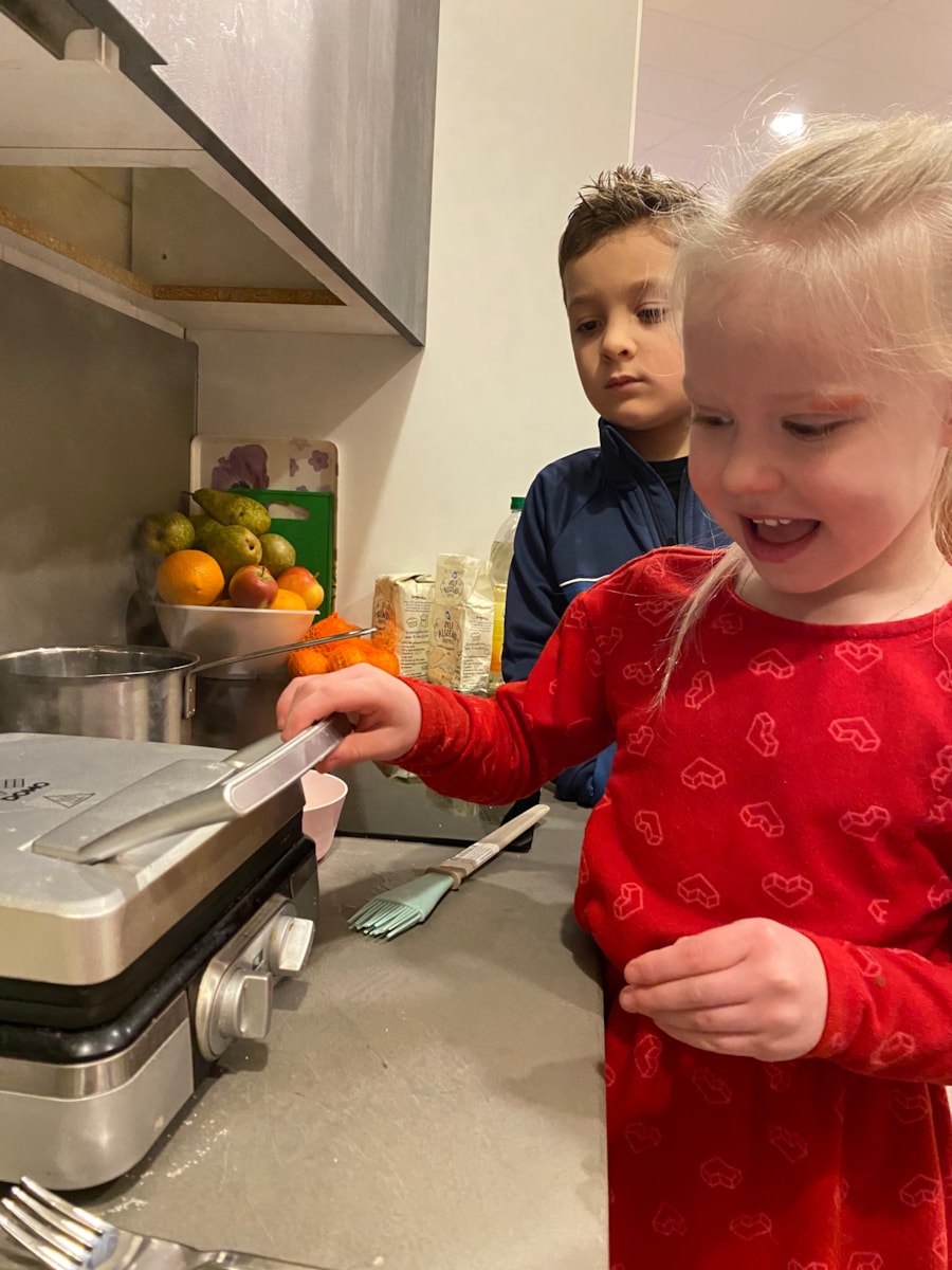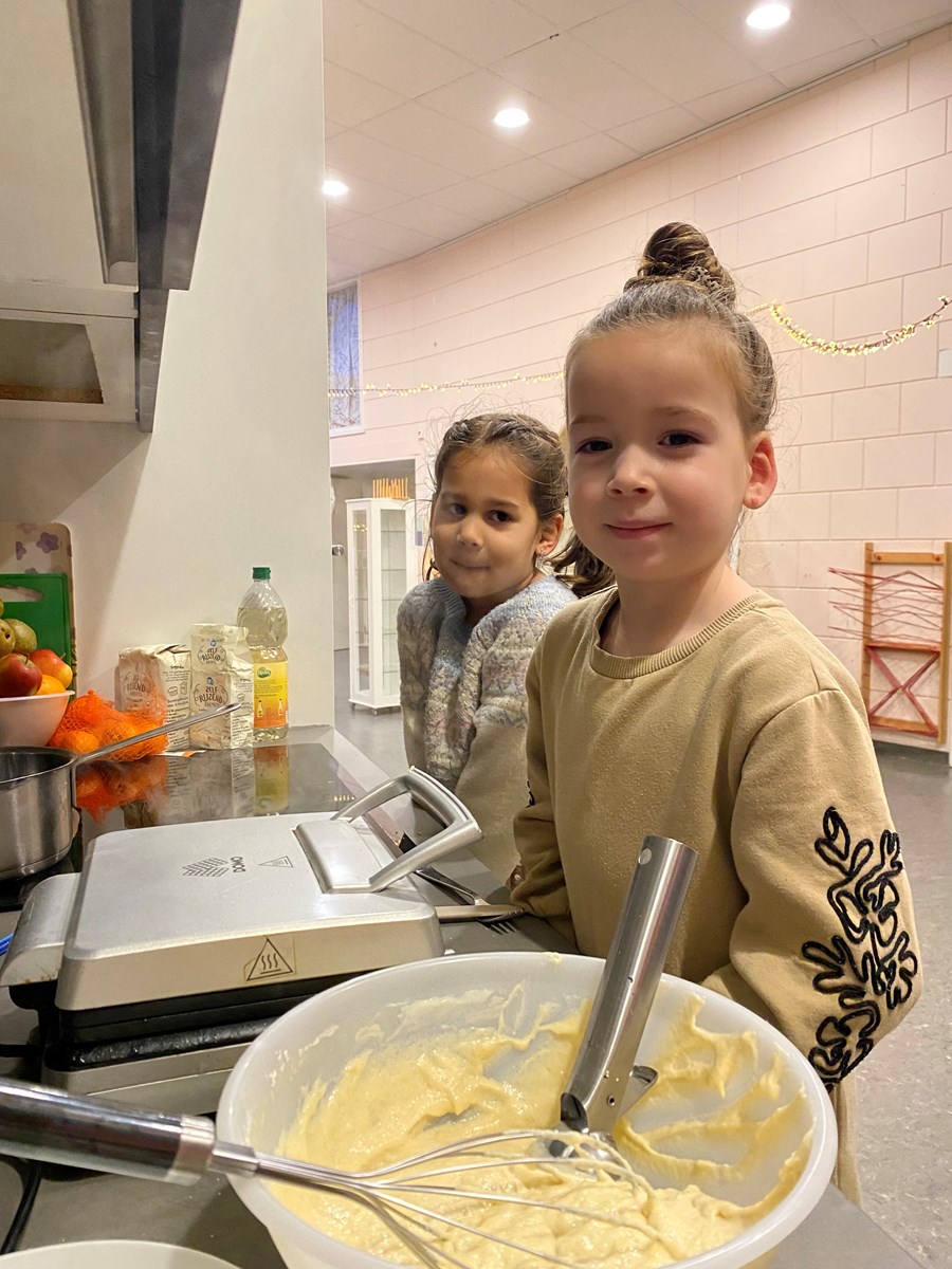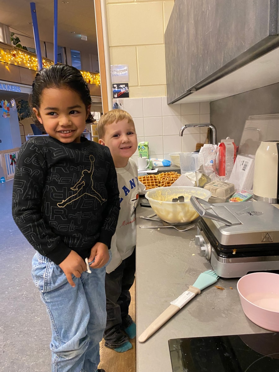 In de klas werd er druk getoverd: dun beslag veranderde langzaam in heerlijke, warme wafels.