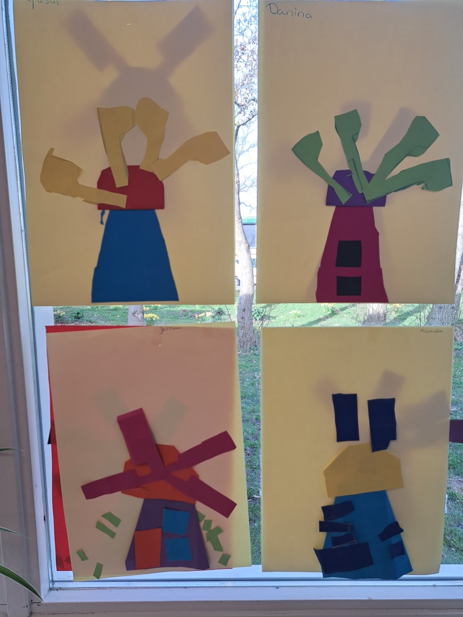 Daarnaast hebben we van vouwpapier molens gevouwen. Dat was een pittige klus, maar de kinderen hebben hard gewerkt en waren erg trots op het resultaat.