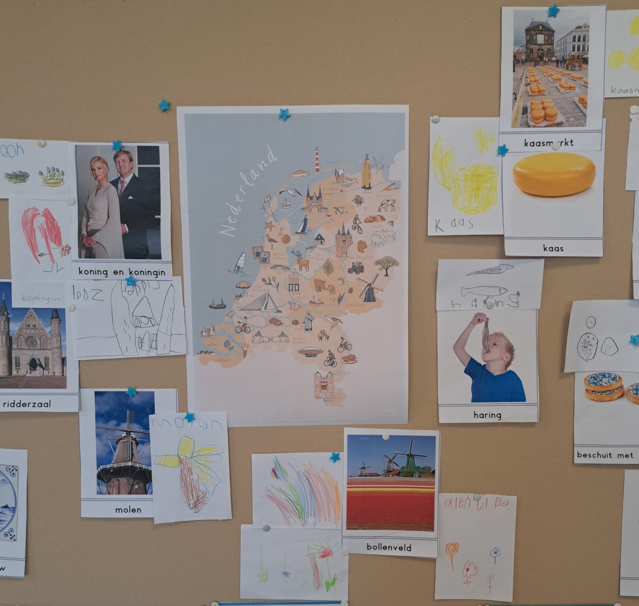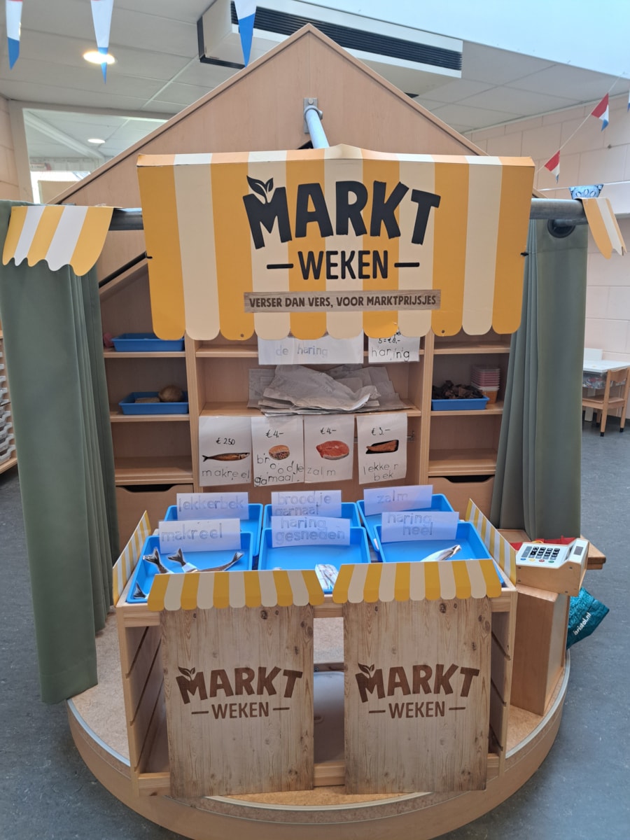 We zijn gestart met ons nieuwe thema: “Ik ga op reis door Nederland.” In de klas hebben we gewerkt met woordkaarten en samen besproken wat nu typisch Nederlands is. De themahoeken beginnen langzaam vorm te krijgen en in de hal zijn we bezig met het maken van verschillende marktkramen waar de kinderen straks in kunnen spelen.